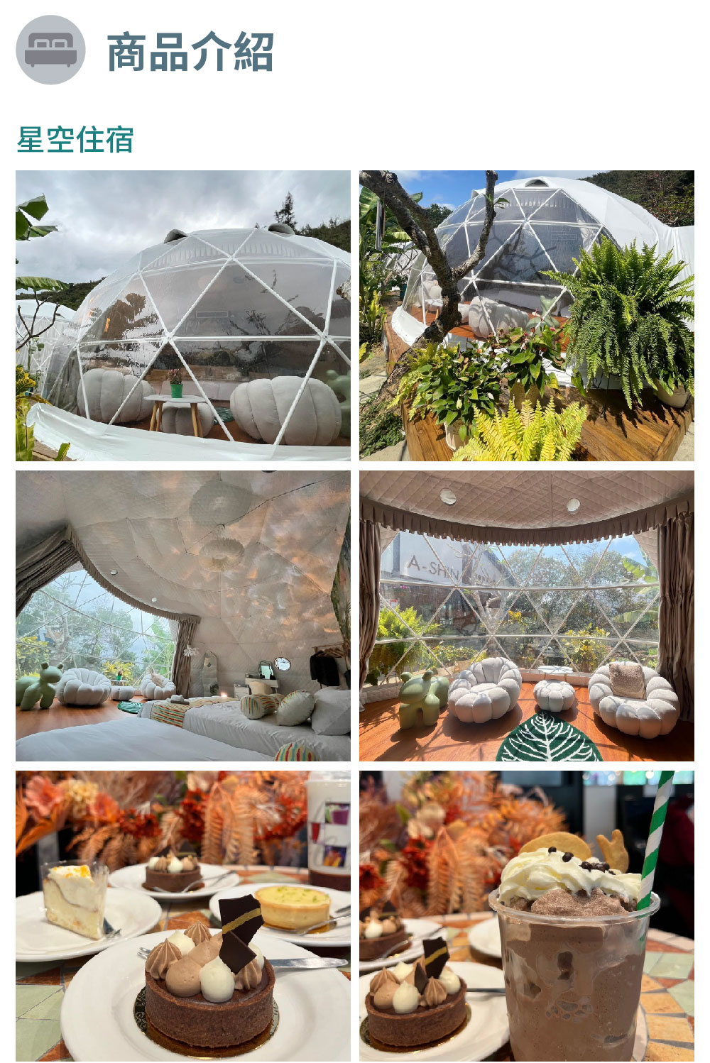 1.憑本券可預約雙人平日體驗阿信巧克力農場星空露營乙晚(含下午茶、晚餐、早餐、導覽、DIY、飯店設施)