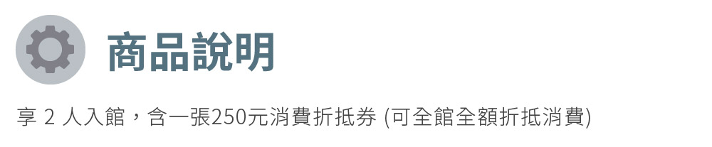 2. 本券可享2人入館,含 $250 消費折抵券。