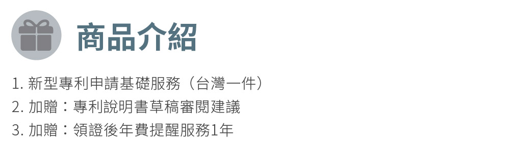 憑本券委託辦理「台灣新型專利申請(一件)」,可折抵新台幣 2,000元 服務費,並享有以下加值服務: