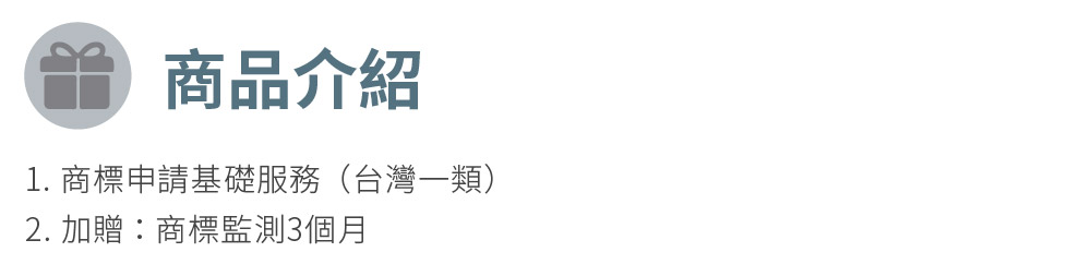 憑本券委託辦理「台灣商標註冊申請(一標一類)」,可折抵新台幣 800元 服務費,並享有以下加值服務: