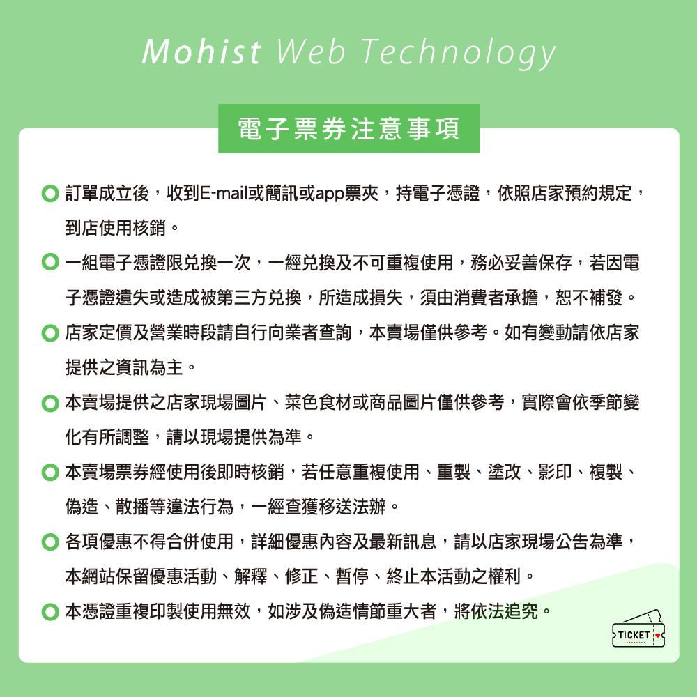 3.本券於販售時已開立發票,兌換時恕不再開立發票。