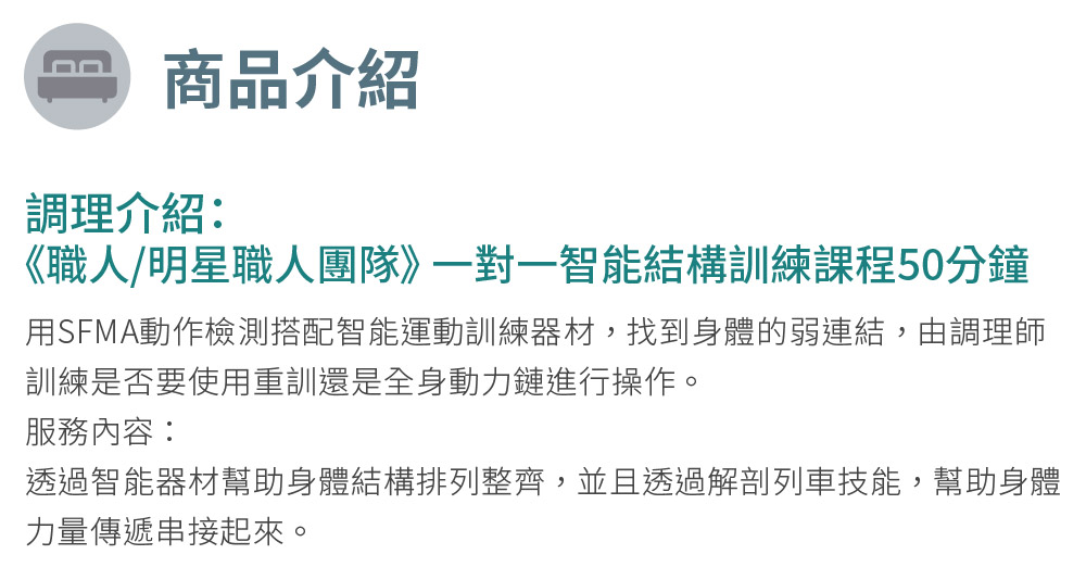 1. 本券限單人可於【FASCIA法夏‧筋膜結構美學】各分店兌換《職人/明星職人團隊》 一對一智能結構訓練課程50分鐘乙次。