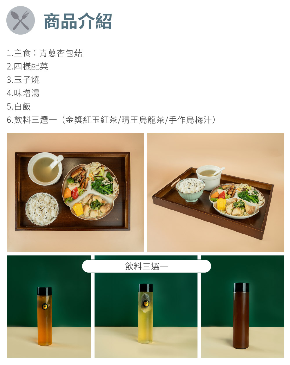• 憑本票券兌換:古亭捷運站【五畝禾】青蔥杏包菇素食定食套餐券(含飲料)(可鍋邊素)(MO)